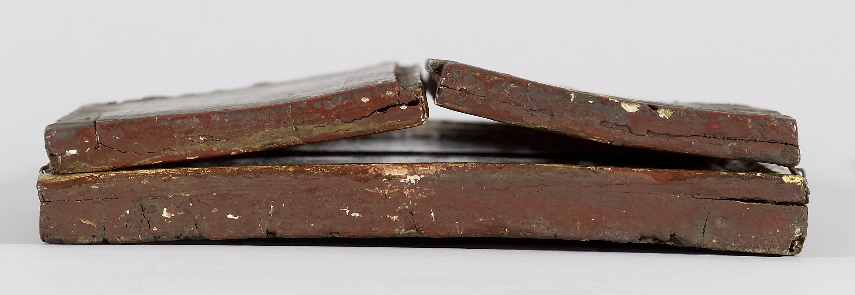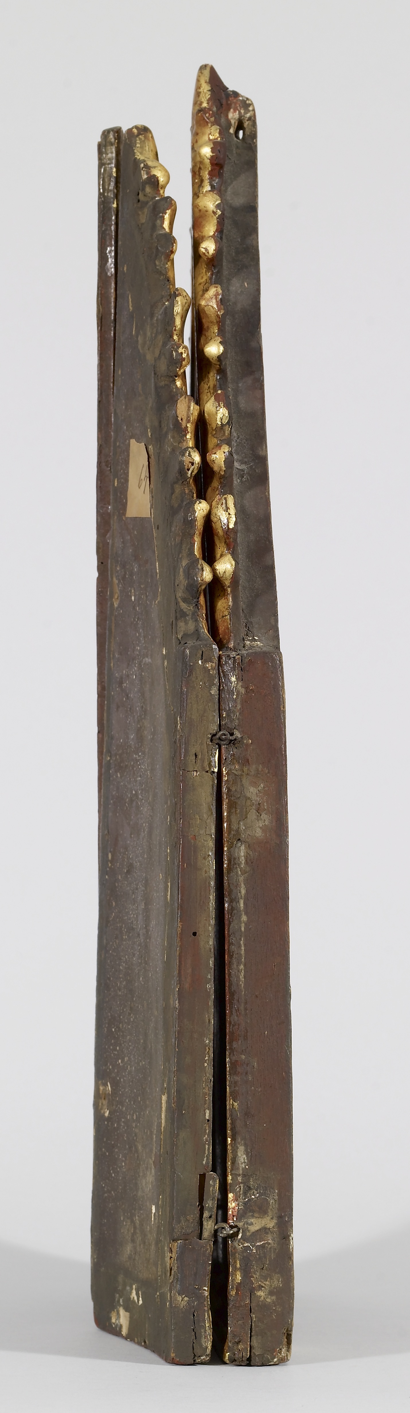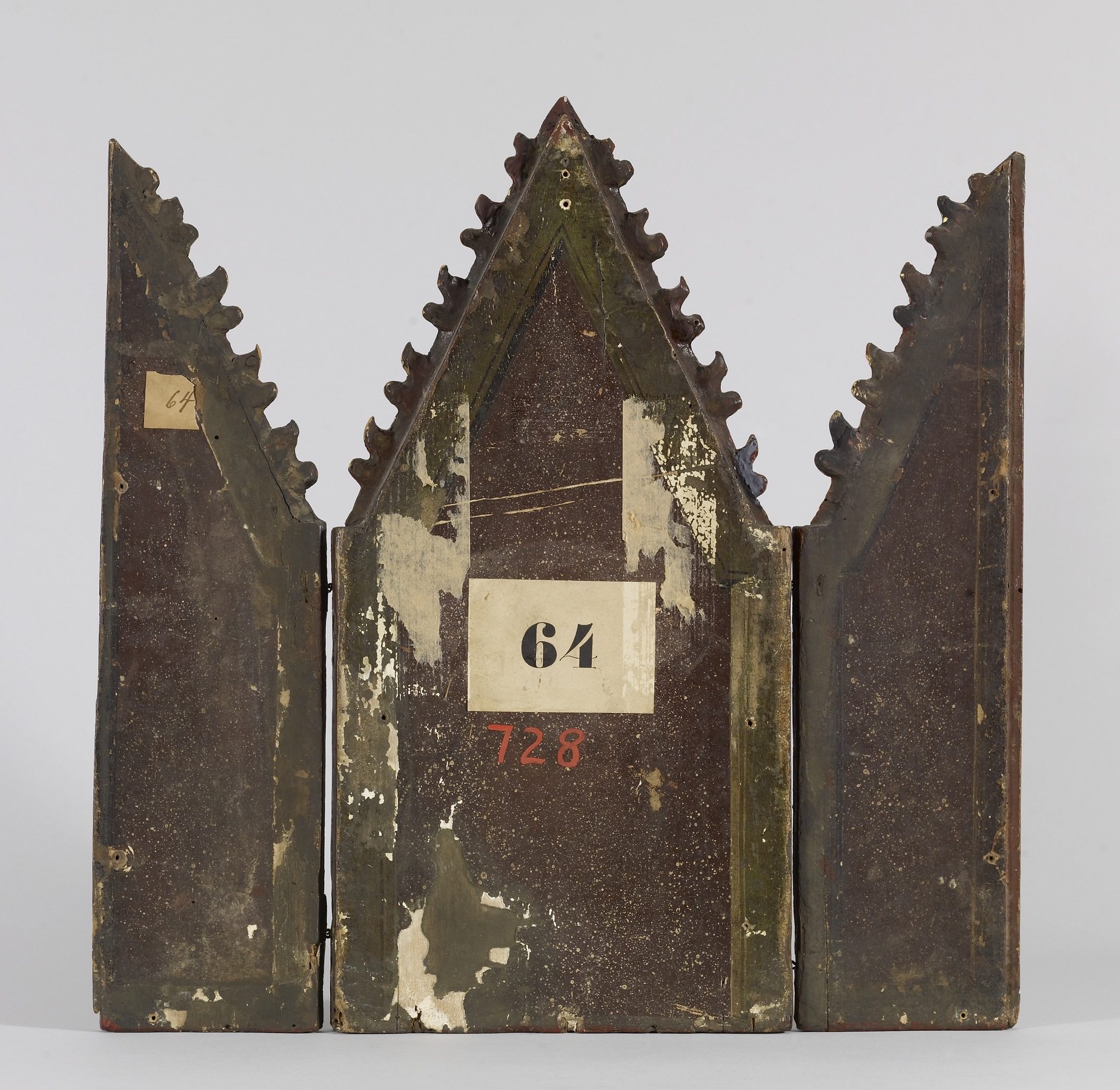 H: 19 7/8 x W: 19 1/2 x D: 3/4 in. (50.5 x 49.5 x 1.9 cm); Central panel painted surface H: 19 7/8 x W: 9 3/4 in. (50.5 x 24.7 cm); Left wing painted surface H: 18 11/16 x W: 4 13/16 in. (47.5 x 12.3 cm); Right wing painted surface H: 18 11/16 x W: 4 3/4 in. (47.5 x 12 cm)