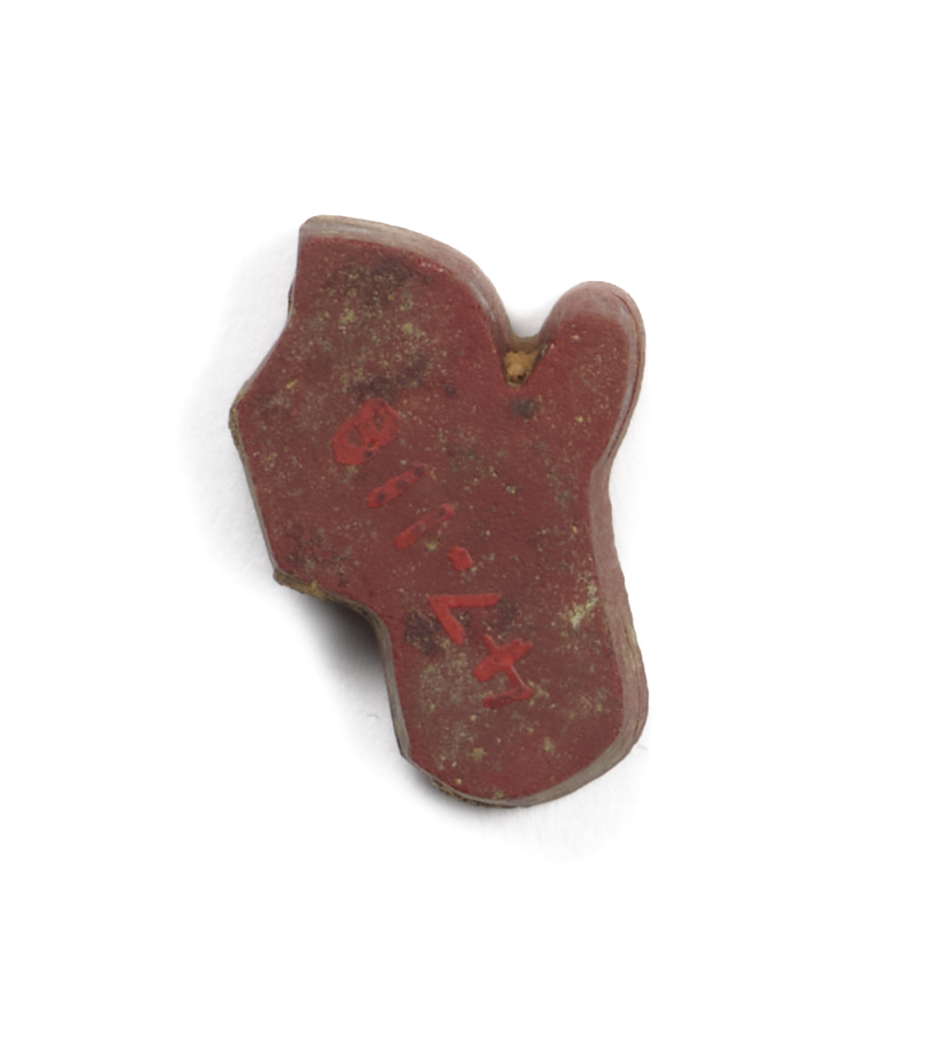 This red glass inlay belonged to the representation of a royal male shown in profile.