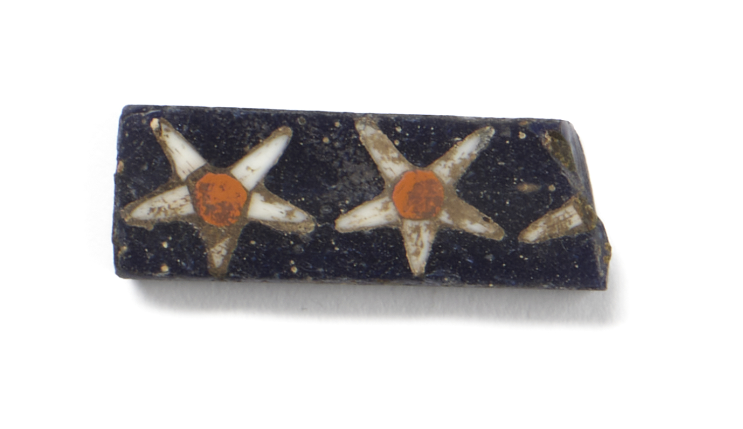 This fragmentary inlay of white stars in a blue background may represent the night sky.