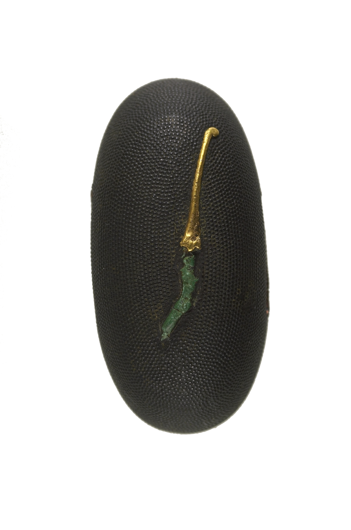 A green hot pepper is depicted in malachite. This is part of a set with Walters 51.1024.
