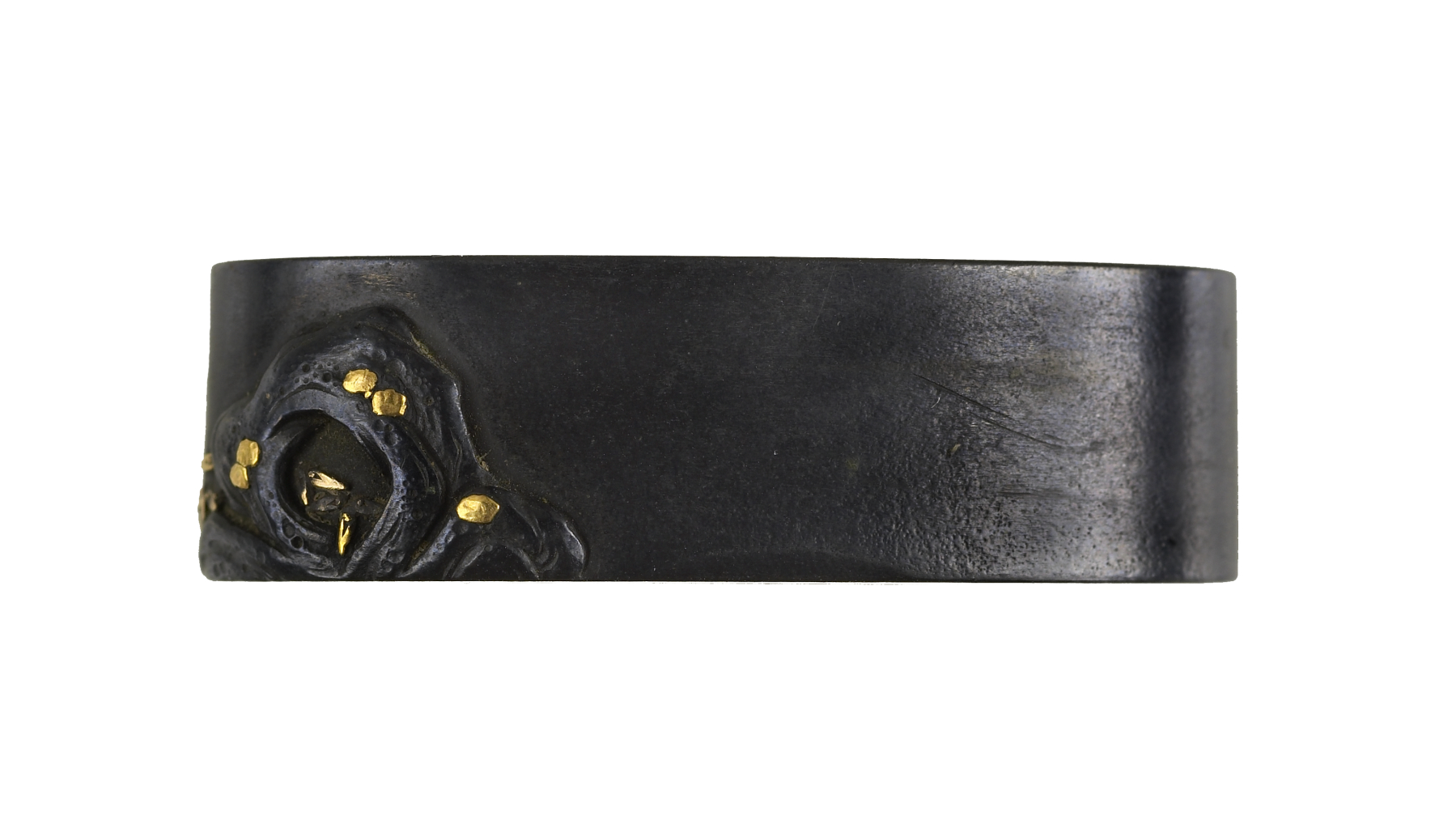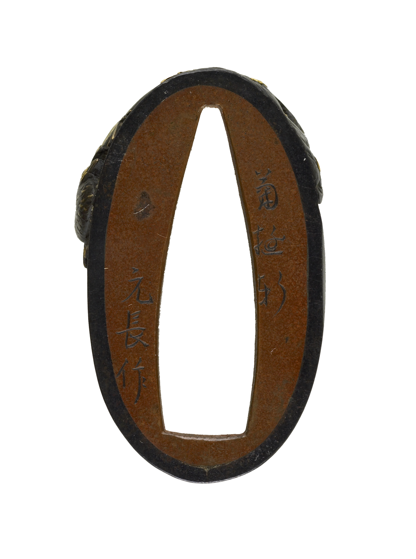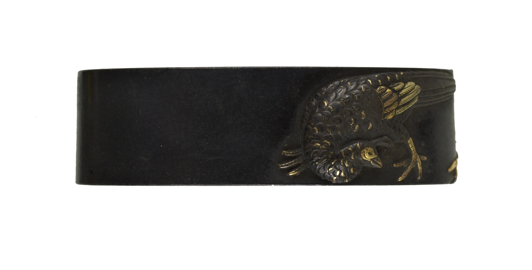 A peahen is depicted at the right of the composition. Her partner is on the matching kashira, Walters 51.1031.