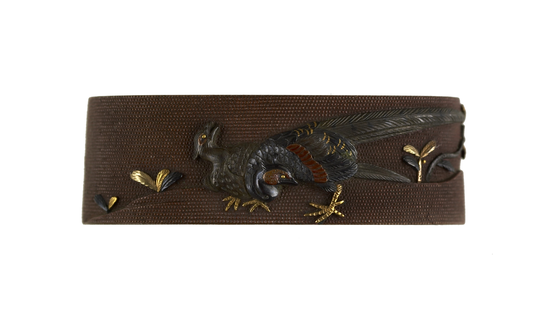 A female pheasant is depicted with a male standing behind her. This is part of a set with Walters 51.1047.