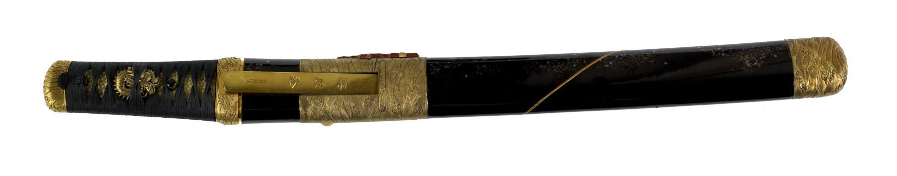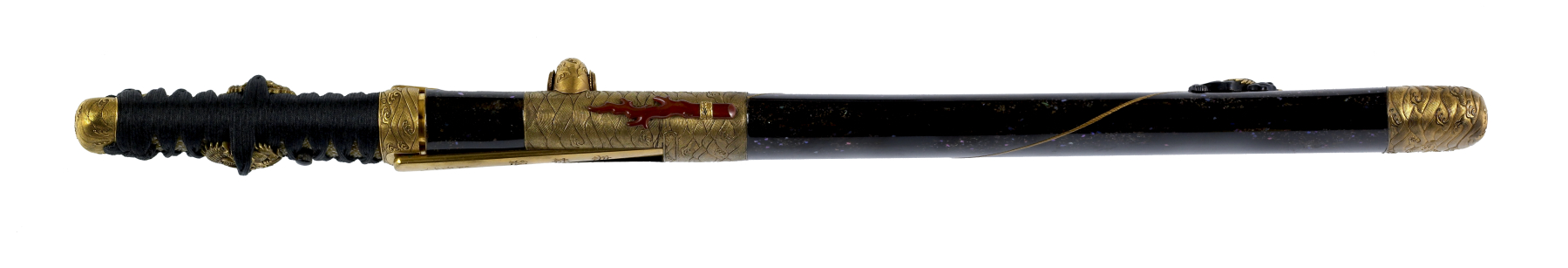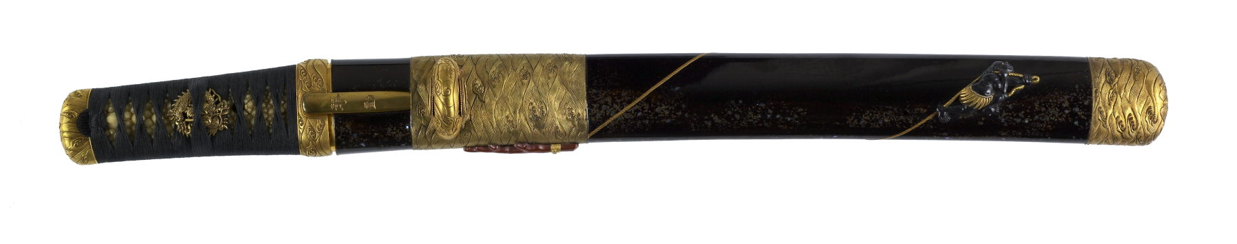 Black lacquer, steel, mother of pearl, copper, gold, silver, shakudo
