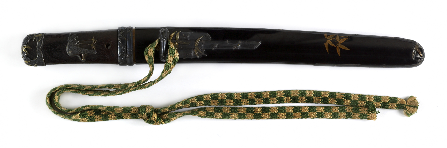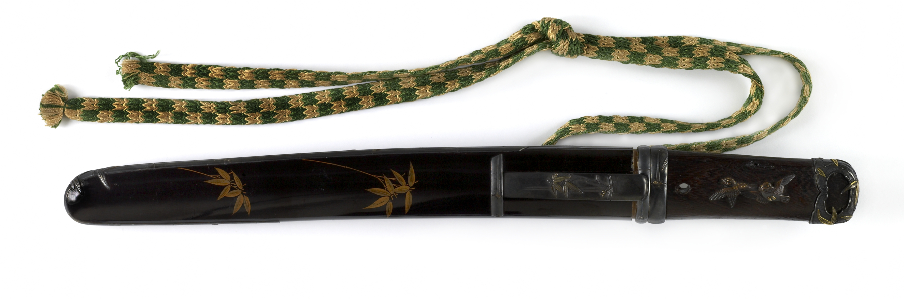 Dagger (aikuchi) with black lacquer saya decorated with bamboo in gold lacquer (includes 51.1276.1-51.1276.4)