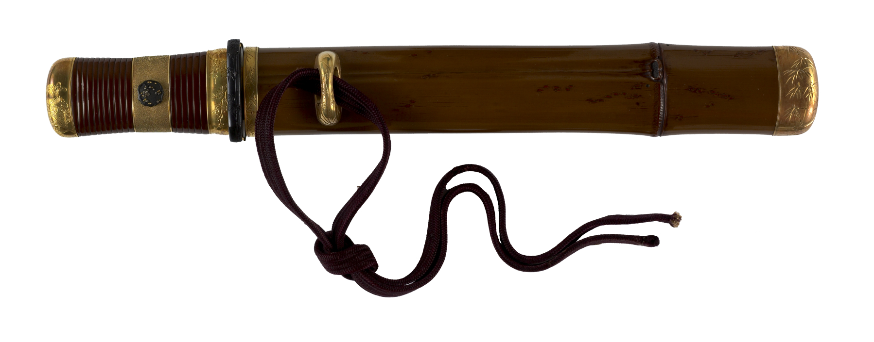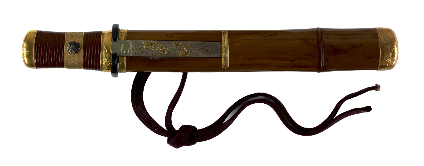 Dagger (hamidashi) with brown lacquer saya worked as bamboo culm. (includes 51.1279.1-51.1279.5)