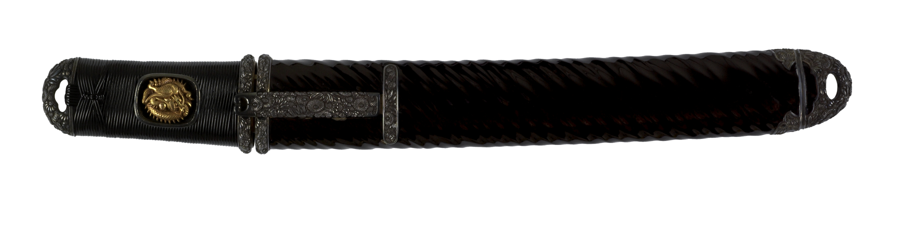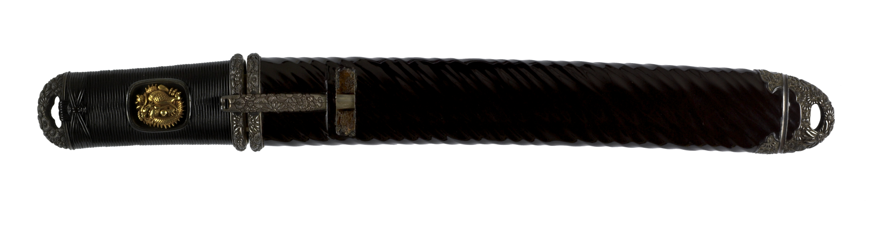 Dagger (aikuchi) with dark brown lacquer saya with diagonal cording, (includes 51.1280.1-51.1280.2)