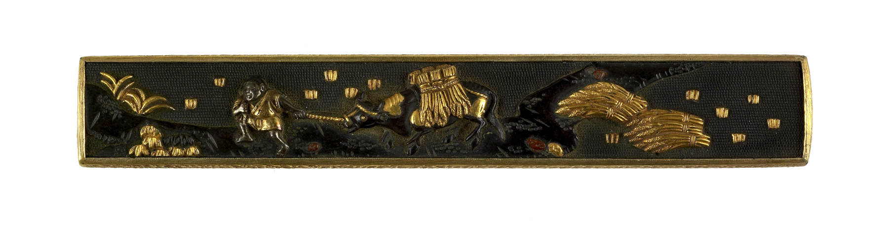 Kozuka with A Man Leading an Ox with Sheaves of Rice