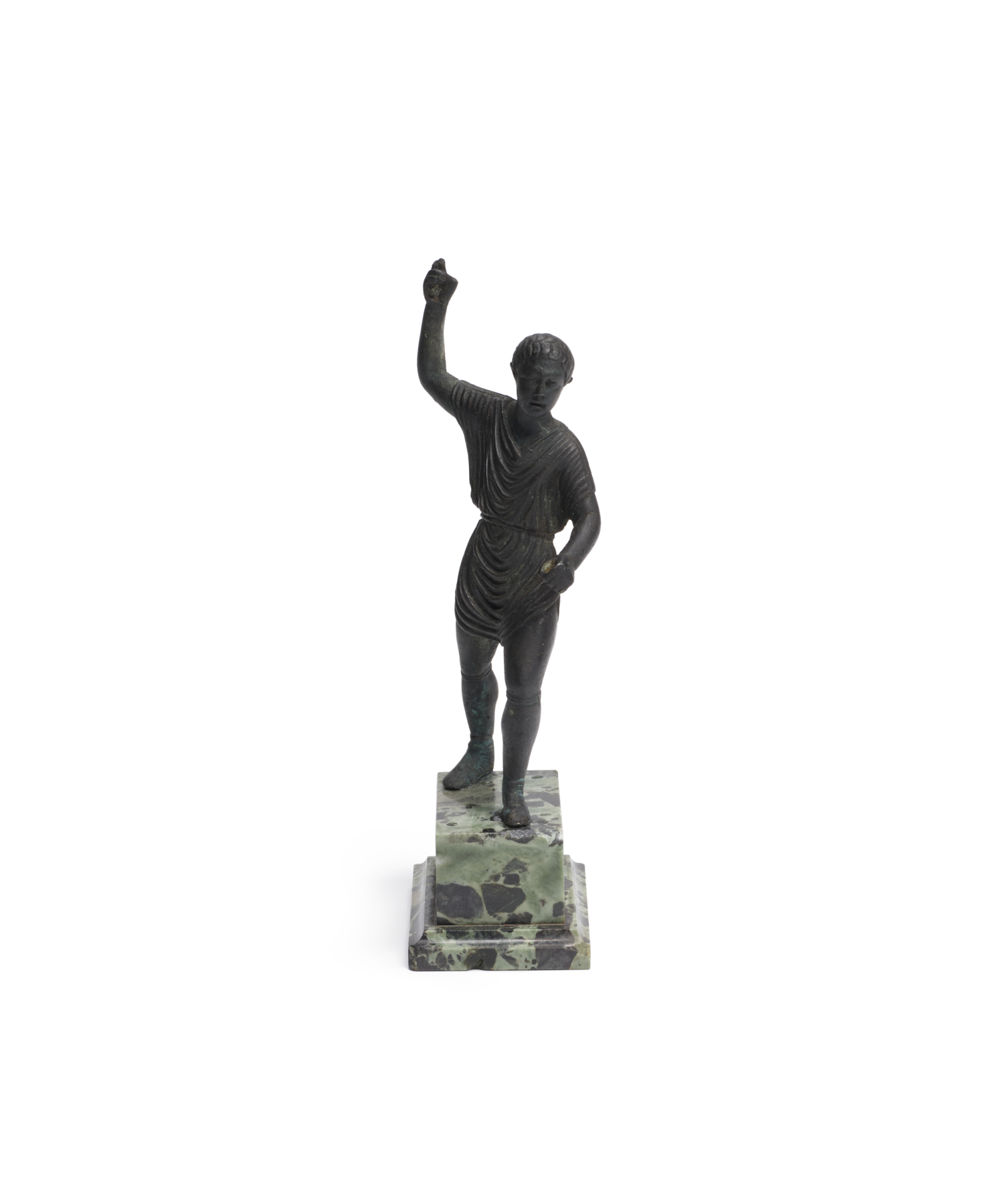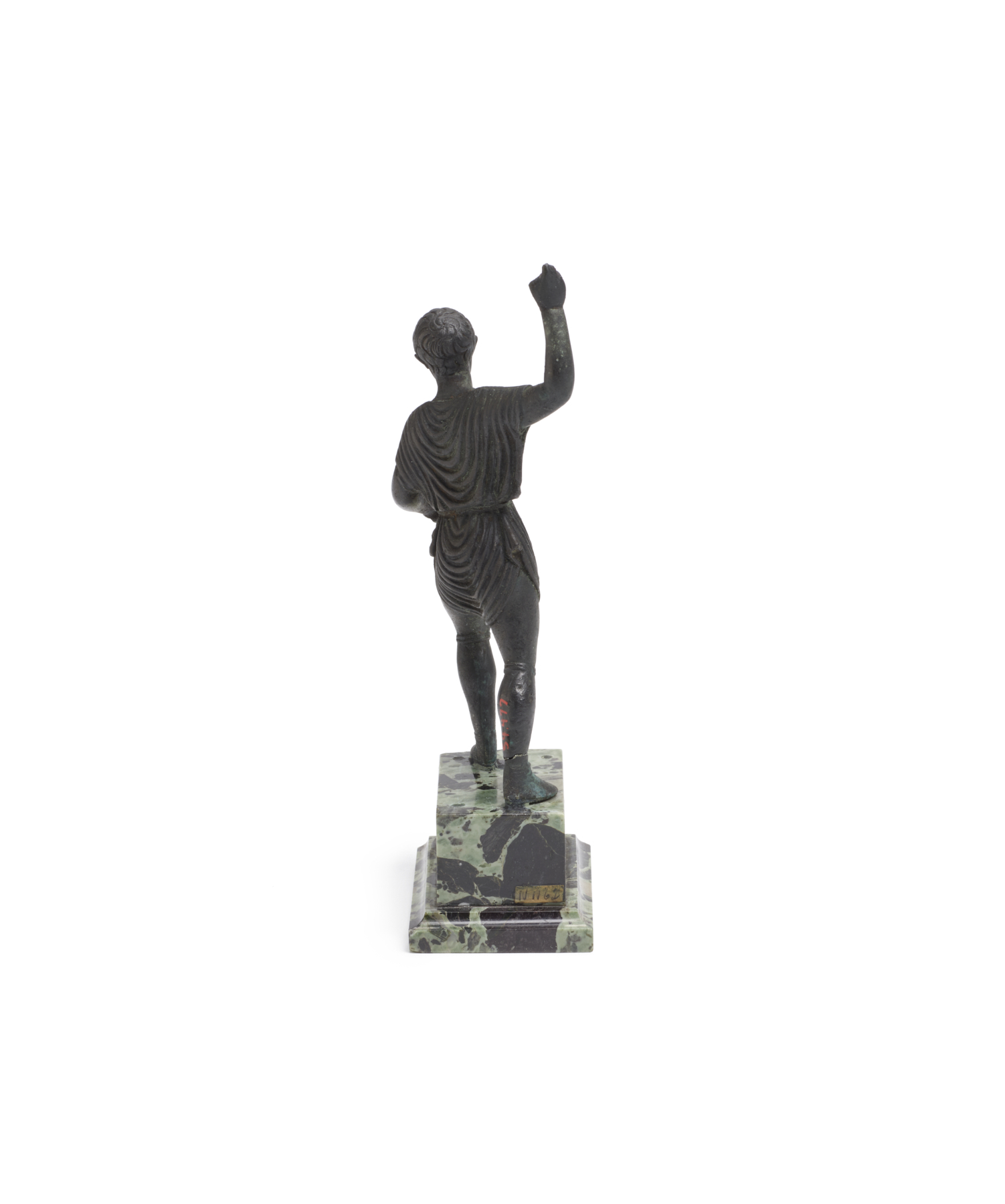 The right arm is raised with a fragment of a rhyton in the hand.