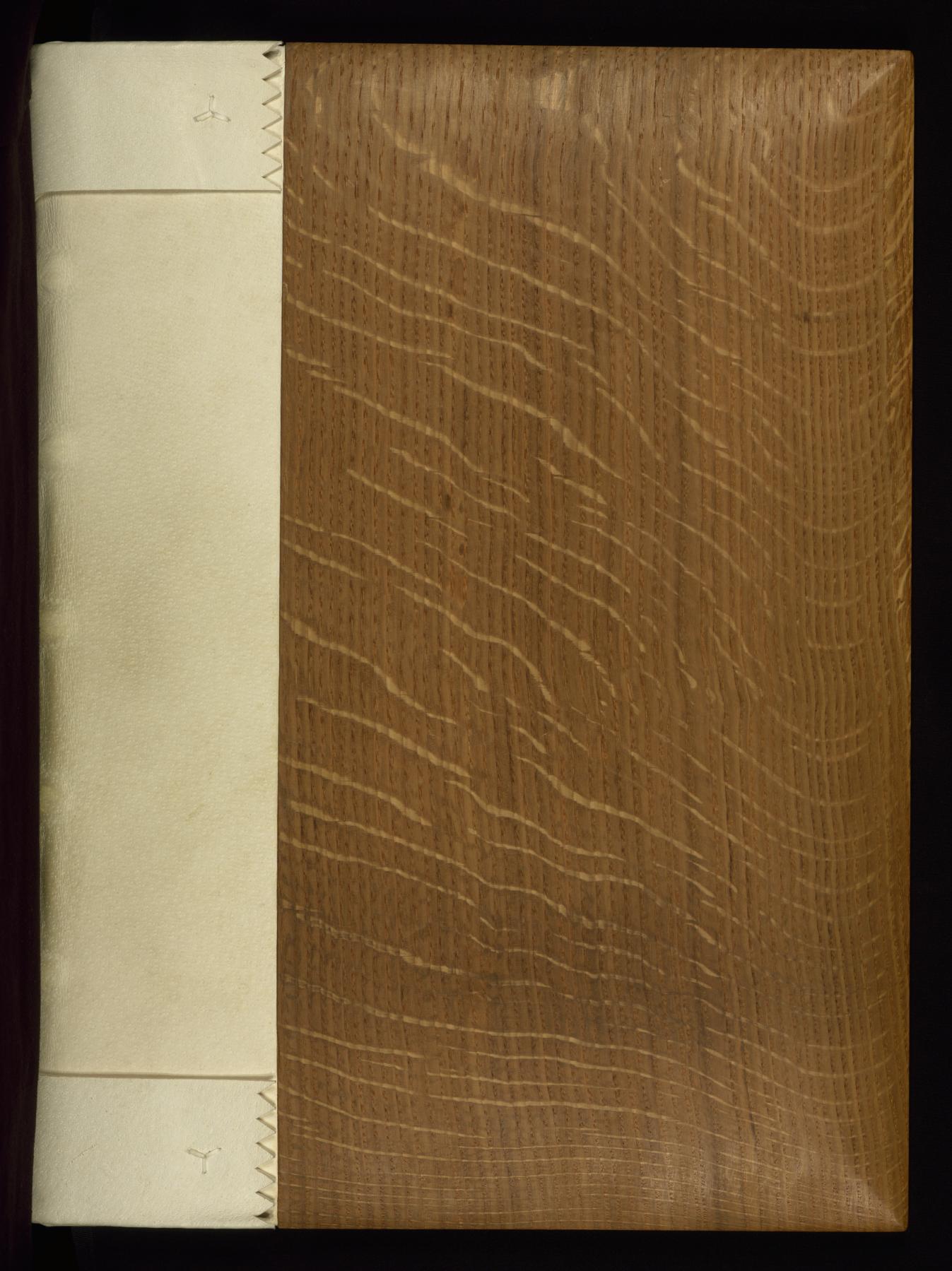 Binding is non-original. New binding made of alum-processed pigskin and quarter-sawn oak boards by Abigail Quandt, Walters Art Museum, Baltimore, 1986; previous binding probably by Leon Gruel, early 20th century, constructed of five recessed cords laced into heavy millboards covered in red silk; manuscript rebound two or three times since the twelfth century.
