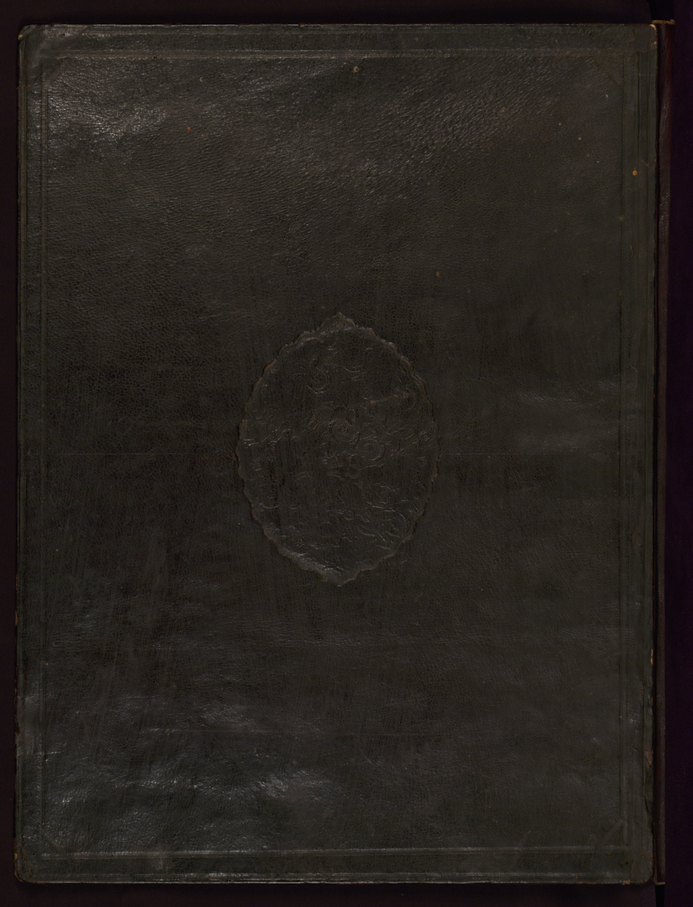 This binding from Walters manuscript W.562 is not contemporary with the text block. It probably dates to the 11th century AH/AD 17th and is composed of black goatskin (with a flap). The binding has a central blind-tooled lobed oval with a floral motif and pastedowns of marbled paper.