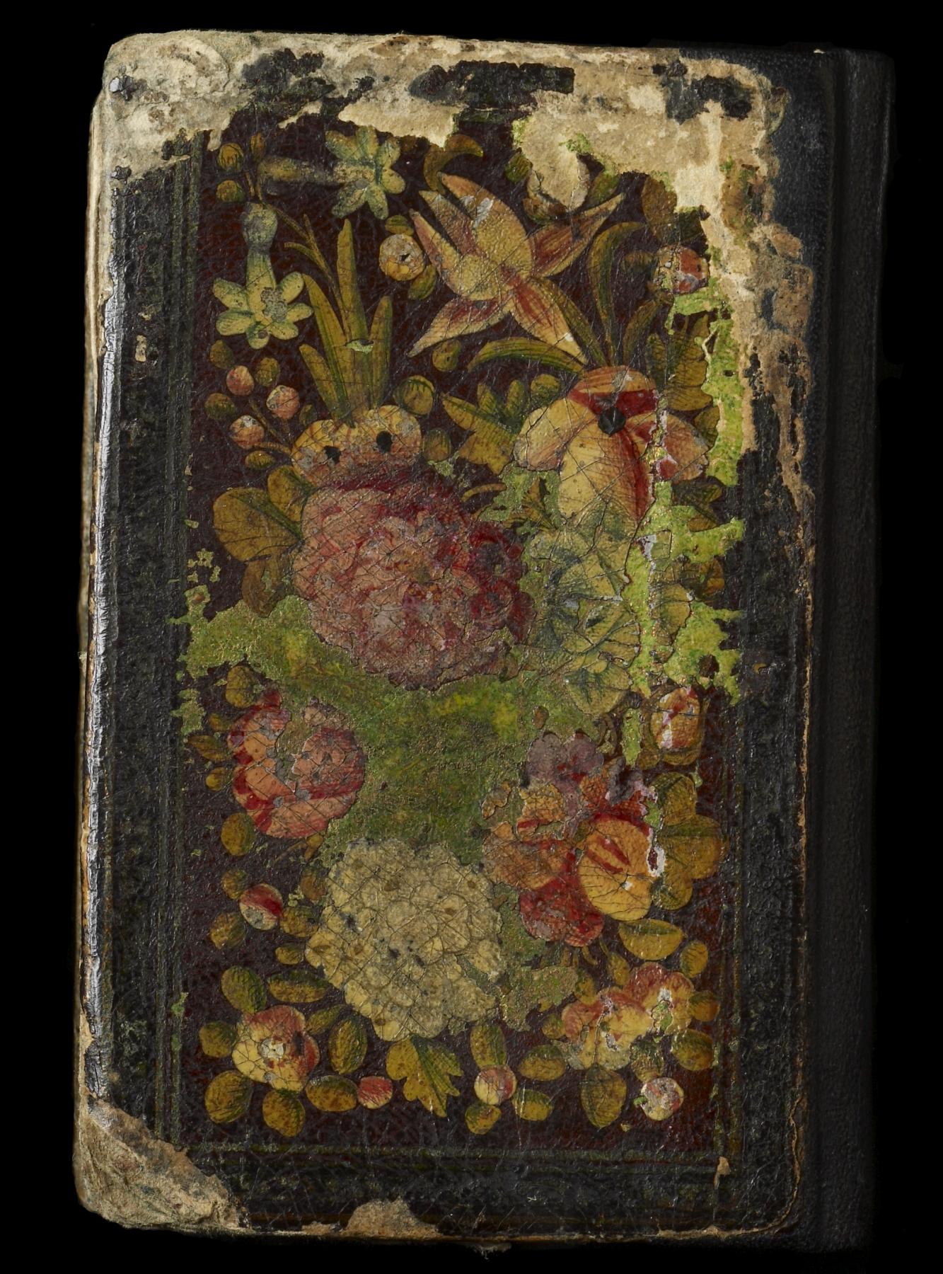 This lacquer binding from Walters manuscript W.573 is original to the manuscript.