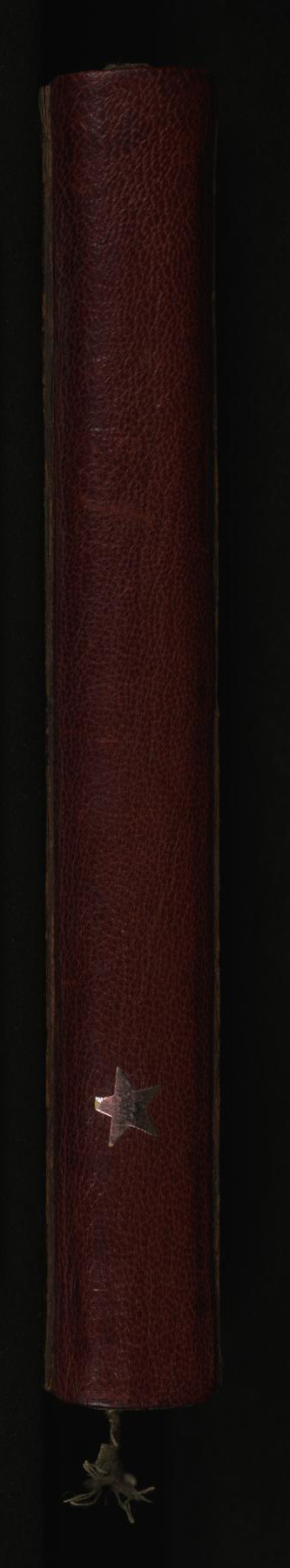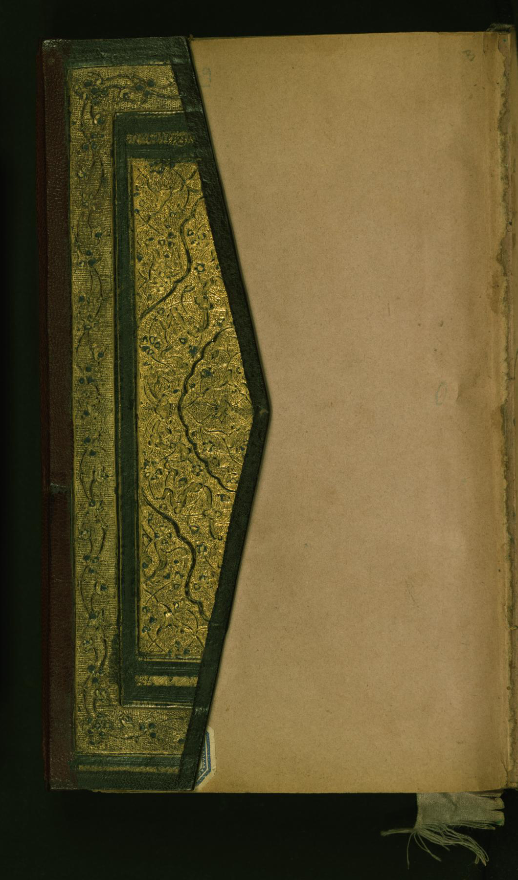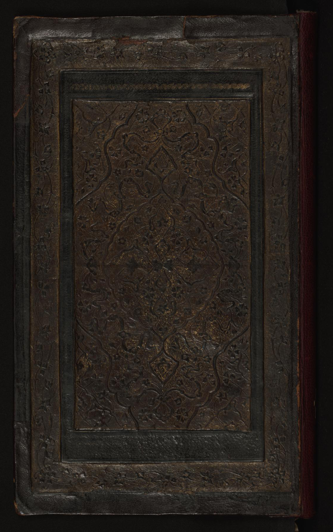 This binding from Walters manuscript W.629 is composed of dark brown goatskin (with a flap), and has an oval central medallion and pendants panel-stamped in relief.