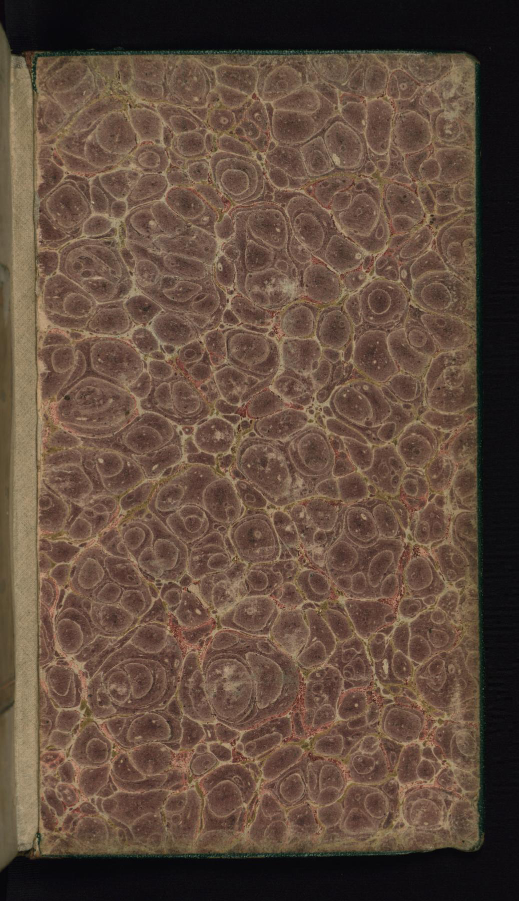 boards covered with green and brown leather; marbled paper pastedowns