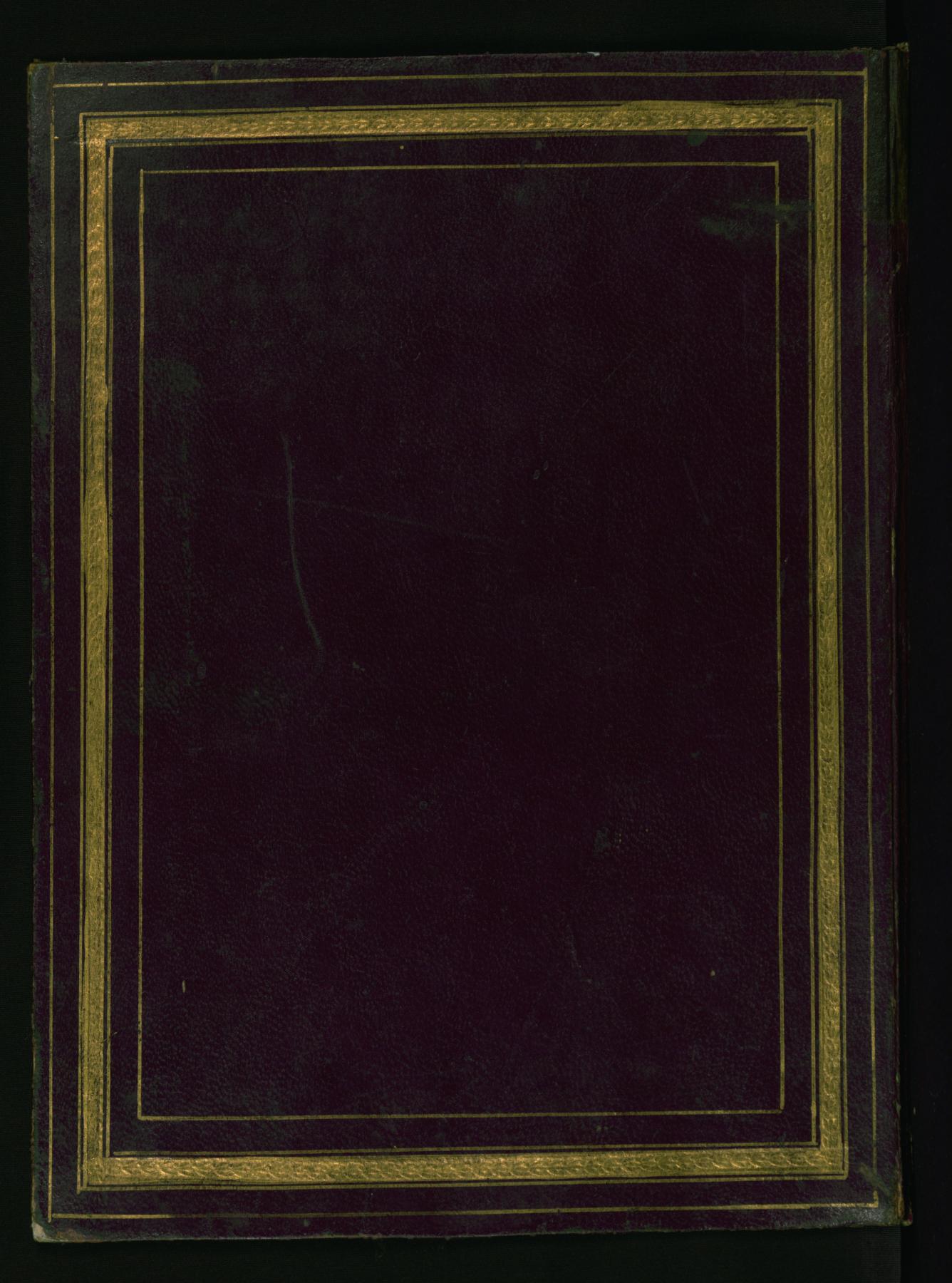 This original binding from Walters manuscript W.666 is composed of brown leather and has a flap. The binding has an empty center panel with gold-painted frames.