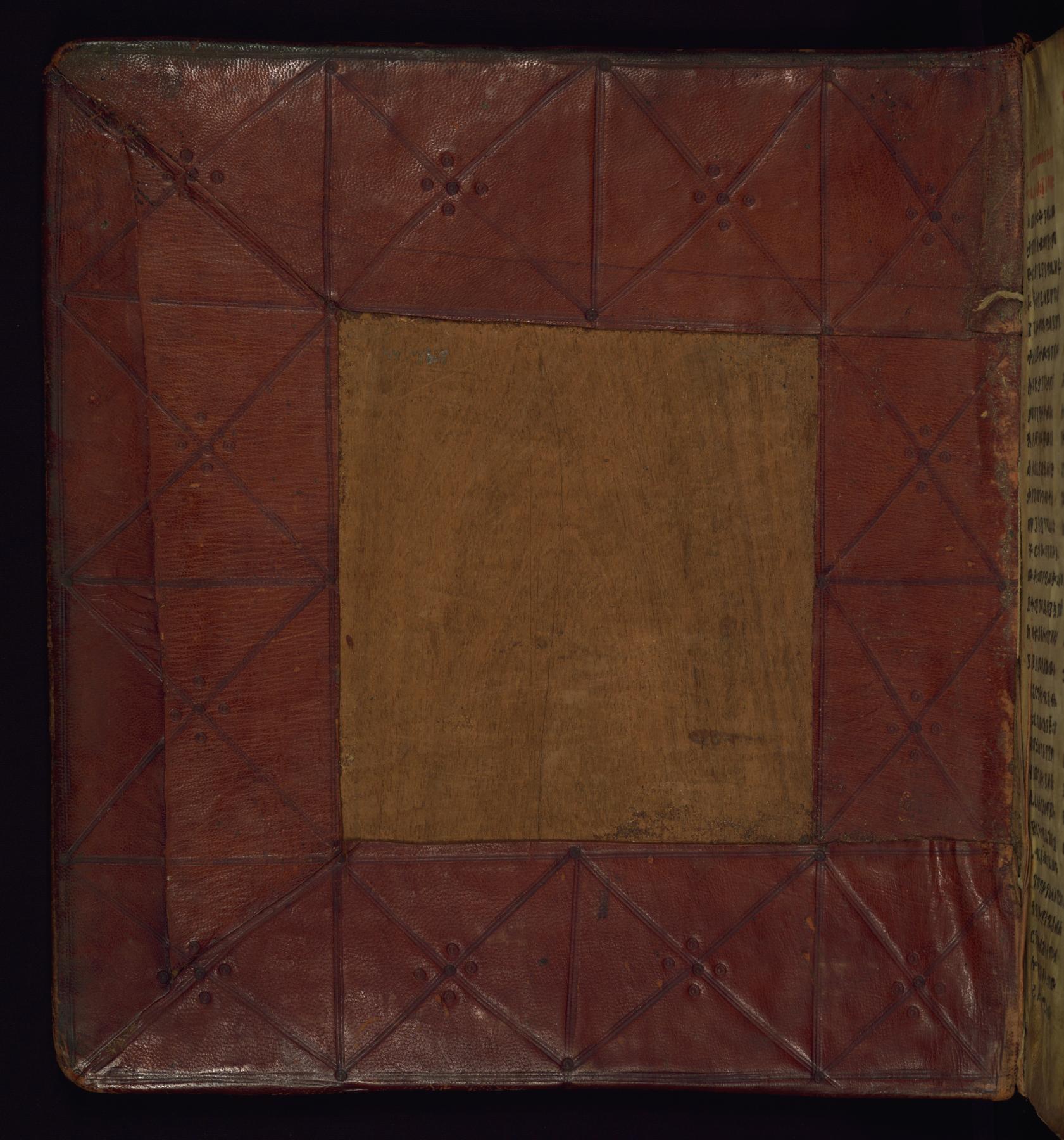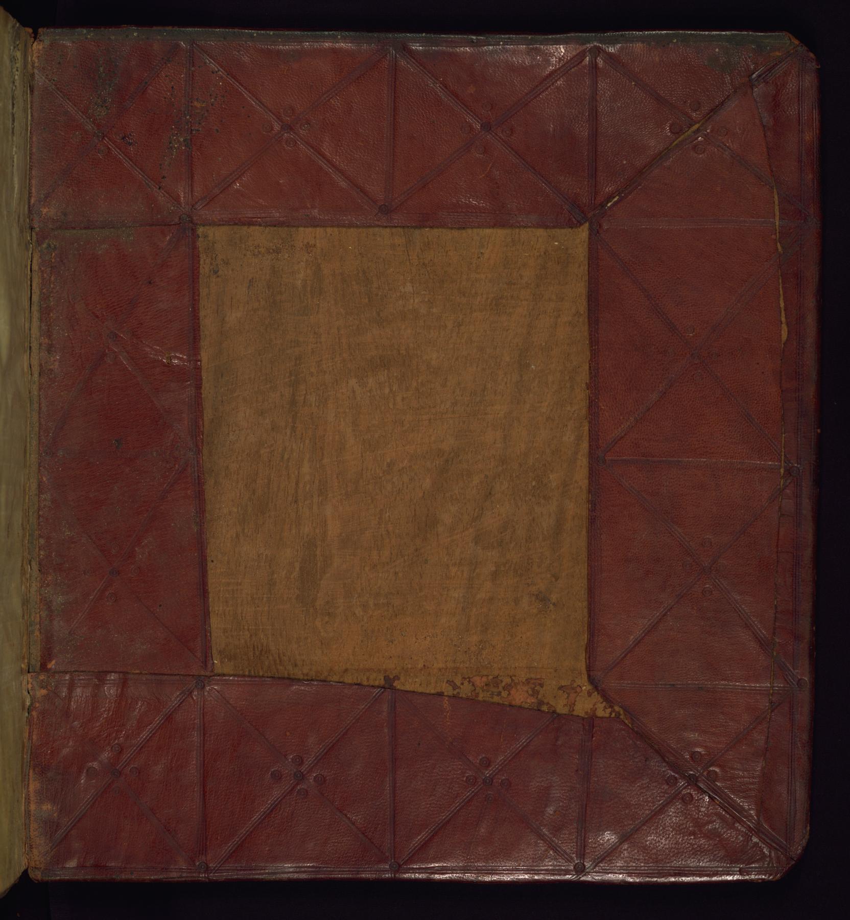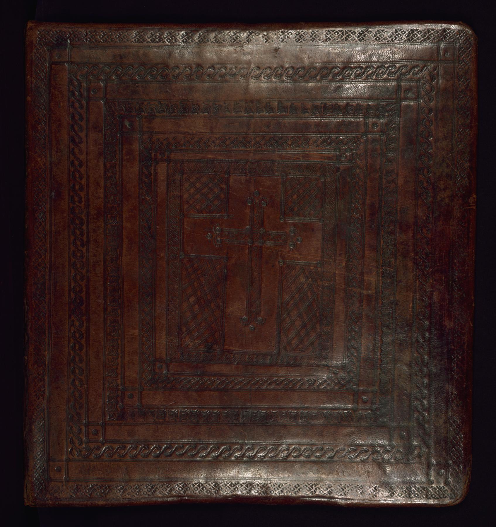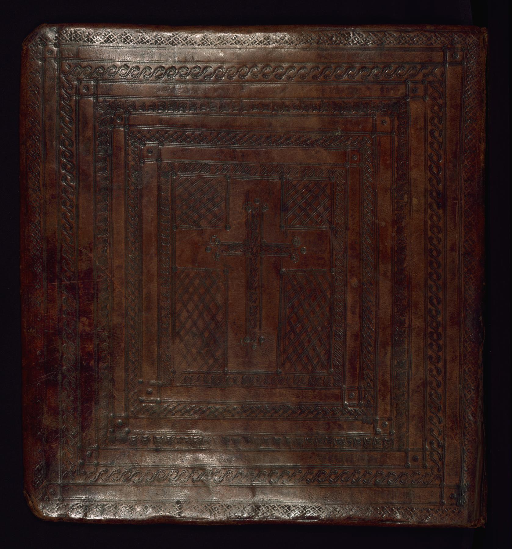 blind-tooled, stamped goatskin with cross design over wooden boards